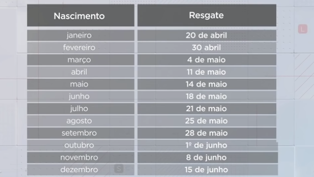 A segunda parcela será paga então de 25 de abril a 6 de maio. Pago entre 1 de maio e 5 de junho juntamente com os benefícios do mês de abril.